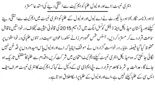 According to express news this case was hiring in Lahore high court that A and O Level candidates will not take admission in MBBS and BDS without giving MDCAT entry tests. After completion of this case Lahore high court orders PMDC that all students who want to take admission in MBBS and BDS will necessary to give MDCAT entry Tests. The official announcement was published online by Lahore high court and Pakistan medical and dental council.